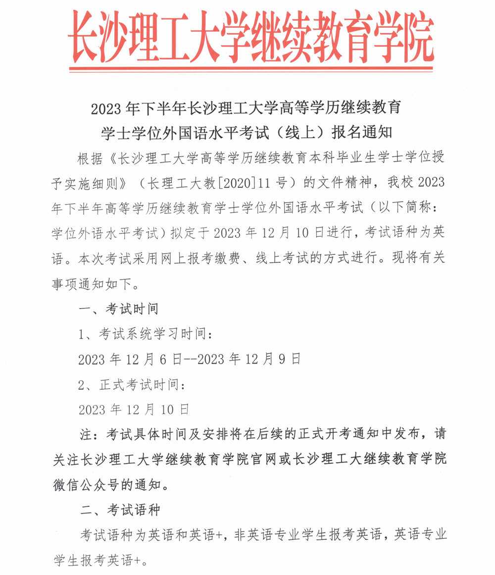 2023 年下半年高等学历继续教育学士学位外国语水平考试(线上) 报名通知