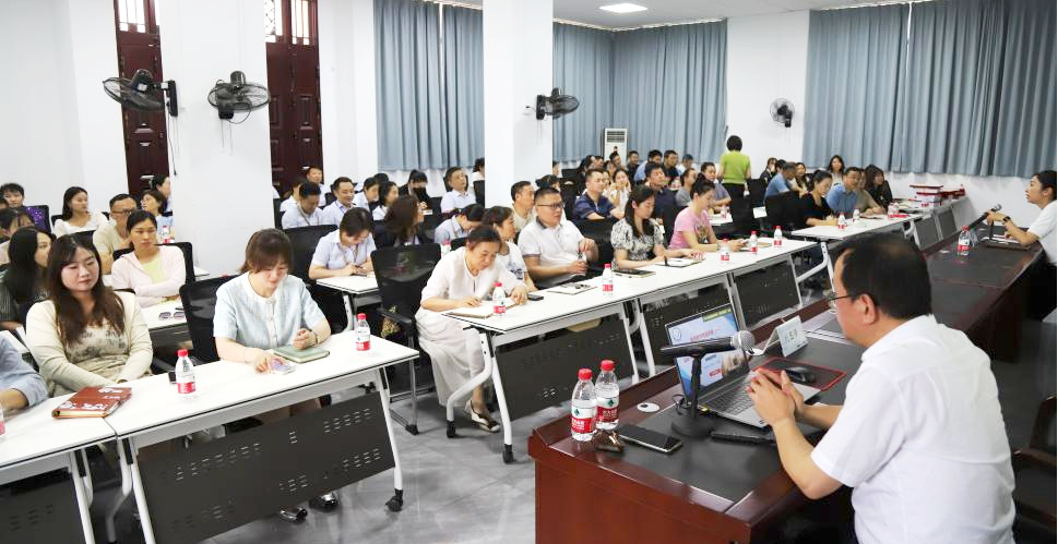 5月28日下午,继教学院“教学质量月”教育教学专题讲座在14教118会议室举行,主题是“如何成为一名优秀的大学教师”。学院党委书记刘思强担任主讲,副院长向英主持,院党委委员易国萍、教学管理部张静主任、学工与后勤保障部谭冰主任、陈会芳主任及相关教务人员、合作机构负责人及全体任课教师参加。