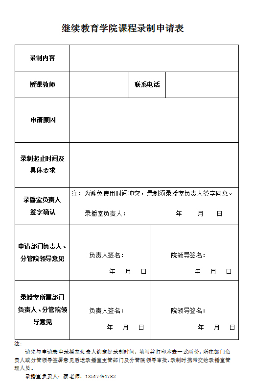 在线买世界杯平台继续教育学院课程录制申请表