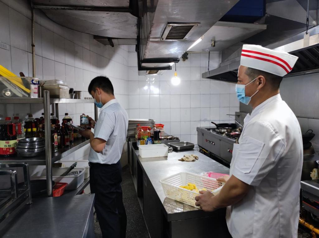 为贯彻落实学校关于食品安全指示精神,国际学术交流中心由各部门经理组成检查小组,以食品安全“四个最严”为指导,建立食品安全检查制度,定期全方位、无死角地对各部门涉及食品安全区域进行例行检查,严格做到“四有”、“两责”,保证食品安全,保障广大师生和来店客人用餐安全。