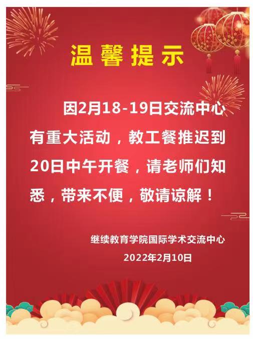 关于寒假教工餐停、开餐的通知