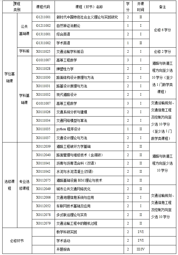 学科现设有道路与铁道工程、交通信息工程及控制和交通运输规划与管理等三个二级学科。