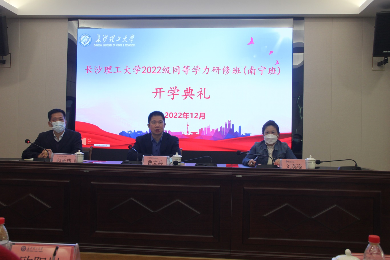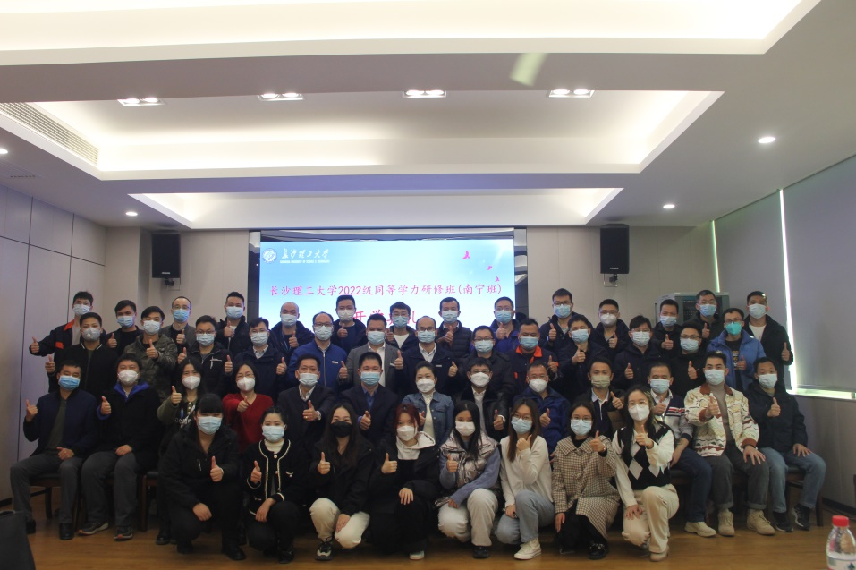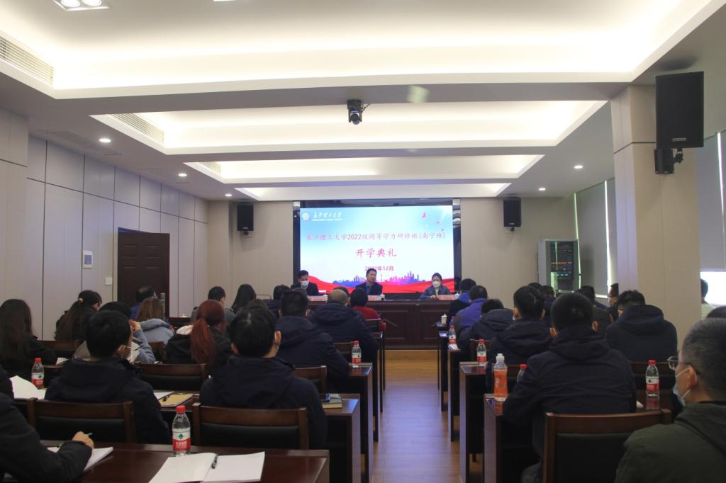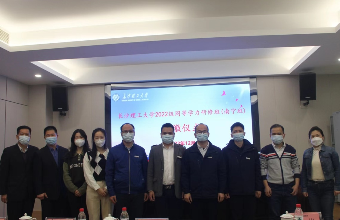 2022年12月15日上午,在线买世界杯平台2022级同等学力研修班(南宁班)在广西交科工程咨询有限公司举行开学典礼。出席开学典礼的领导有广西交科集团有限公司党委委员、纪委书记曹立兵,在线买世界杯平台继续教育学院副院长刘英姿,广西交科工程咨询有限公司党支部书记、董事长赵承伟,广西捷通路桥勘察设计有限公司监事凌刚宁,广西交科集团有限公司人力资源部副部长王彬等,本期研修班40多名学员均来自咨询公司各部门、项目办及业主单位。广西交科工程咨询有限公司党支部书记、董事长赵承伟主持开学典礼。