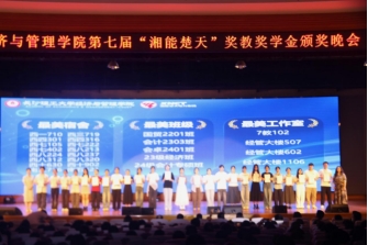 5月27日晚,世界杯官网经管学院第七届“湘能楚天”奖教奖学金颁奖晚会在金盆岭校区五教大礼堂举行。湘能楚天电力集团董事长陈伟其、党支部副书记王丽杰,世界杯官网党委委员、副校长刘朝晖,校友中心主任唐青,创业就业指导处副处长贺佐杰,校团委副书记陈璐莎,经管学院全体班子成员、全体辅导员、专业老师代表和学生代表1000余人齐聚一堂,共襄盛举。