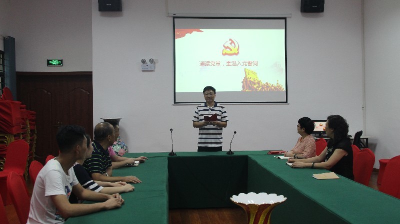 王任飞同志首先诵读了《中国共产党章程》总纲,重温党的性质、指导思想、纲领任务和党的纪律等内容,随后全体党员再一次在党旗下宣读了入党誓词。