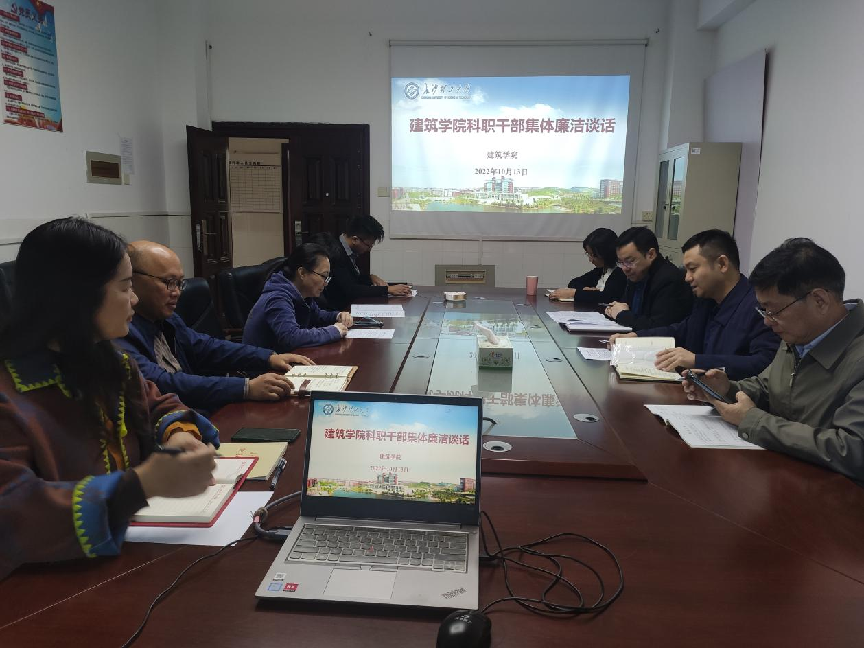 10月13日上午,建筑学院召开会议,对全体科职干部进行集体廉洁谈话,学院领导班子成员、专职组织员及各科室负责人参加会议。