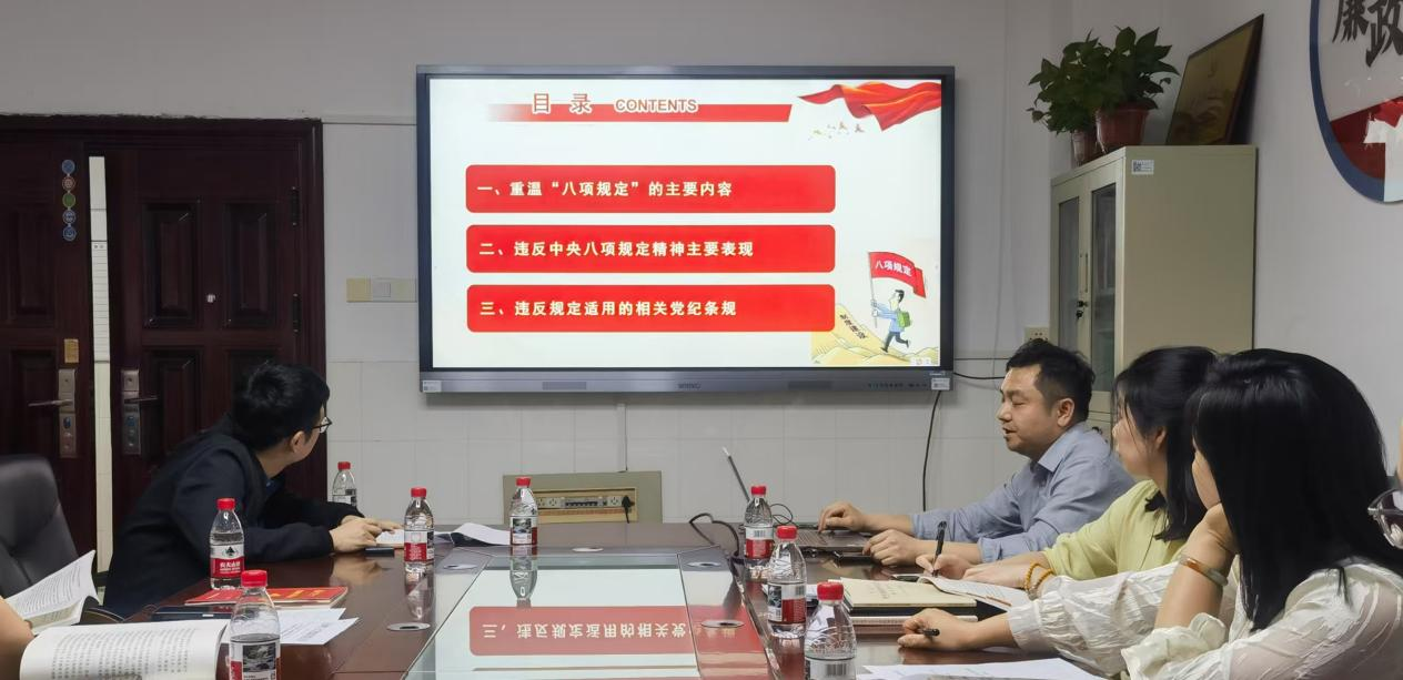 熊鹰首先带领大家共同学习了《习近平关于加强党的作风建设论述摘编》中“中央八项规定是改进作风的切入口和动员令,是长期有效的铁规矩、硬杠杠”篇章中的内容,传达了深入贯彻中央八项规定精神学习教育相关文件精神,并从“‘八项规定’的主要内容”“违反中央八项规定精神主要表现”“违反规定适用的相关党纪条规”等方面作了专题学习辅导,阐述了这次学习教育的重要意义和具体内容,对学院开展学习教育提出了要求。