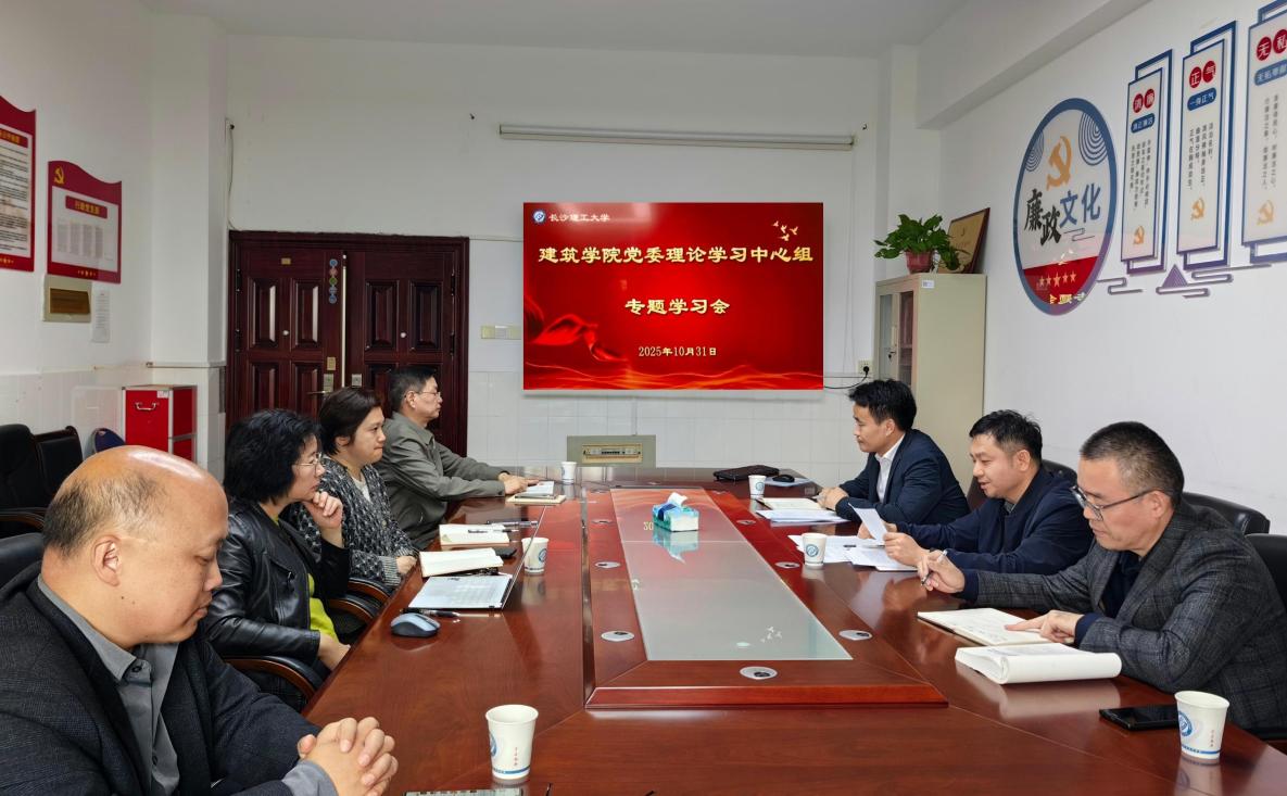10月31日下午,建筑学院党委理论学习中心组在金盆岭校区16教305会议室召开学习会议,专题学习党的二十届四中全会精神。学院党委书记熊鹰主持会议并作主题发言,学院党委理论学习中心组全体成员参加会议。