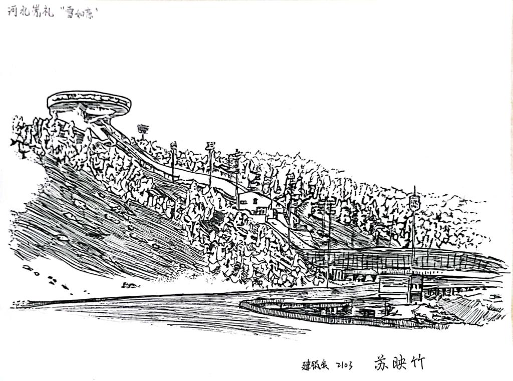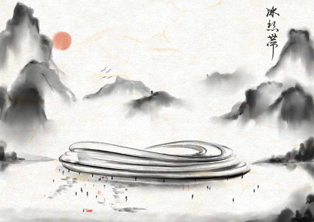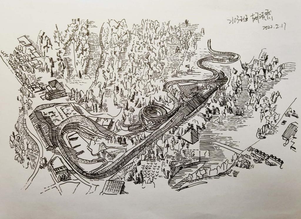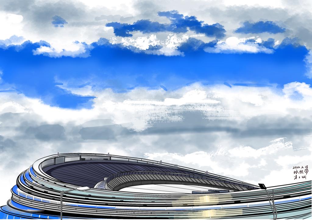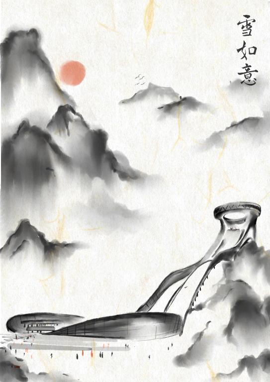 “我一直都很关注冬奥盛会,身为建筑学子,我关注到了雪如意,这个完美结合了中国古意向和使用功能的建筑。它融合在山水间,就好像中国水墨画一样,我很想用我的画笔记录下来,让更多人知道建筑的魅力。”“谷爱凌夺冠,苏翊鸣夺冠,在首钢大跳台上,中国队收获了多枚金牌。在观看比赛时,看到运动员们直冲云霄,我终于明白了敦煌飞天的内涵,建筑师对功能形式的把握巅峰造极,我决定用我的理解和专业知识画下来。”这群学生说。