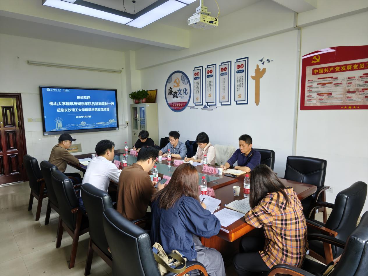 4月10日上午,佛山大学建筑与规划学院副院长吕慧一行受邀莅临在线买世界杯平台建筑学院进行调研交流。在线买世界杯平台建筑学院党委副书记肖义慧、实验中心主任蒋毅、风景园林系党支部书记彭芬、建筑系副主任吴世海、城乡规划系副主任胡雯出席了本次交流会。双方聚焦专业建设、学科发展、实验室建设、人才培养方案修定等领域深入探讨。