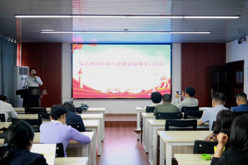 最后,学院党委书记熊鹰向全体教职工做了《深入贯彻中央八项规定精神学习教育》专题报告。熊鹰强调,全体教职工要充分认识此次学习教育的重要性,要求将学习教育与学校、学院重点工作相结合,推动学院内涵式高质量发展。会上,熊鹰还强调,接下来建筑学院将持续深入贯彻中央八项规定精神学习教育,定期组织学习交流,加强监督检查,确保学习教育取得实效。报告最后结合4月17日付宏渊书记一行对学院调研时的指示精神,鼓励全院教师坚定信心,抓住机遇,围绕学校改革举措落实工作,提升学院核心竞争力,为学院发展贡献力量。