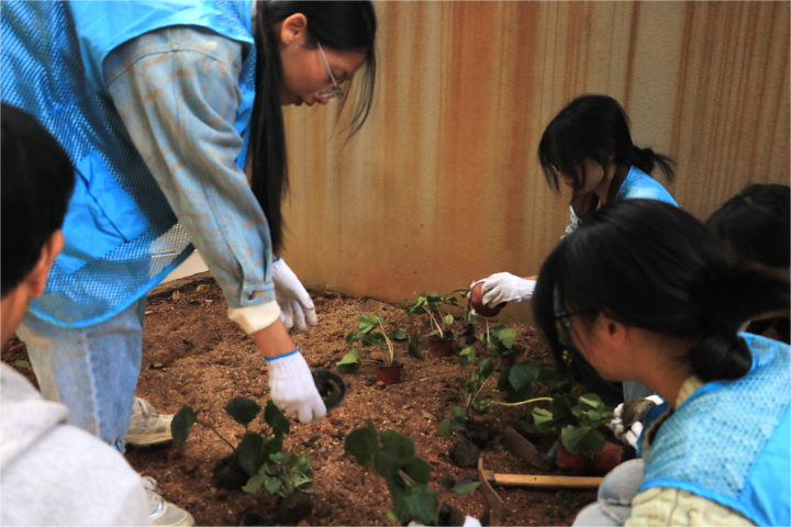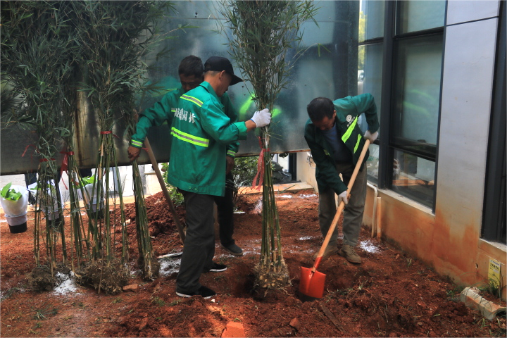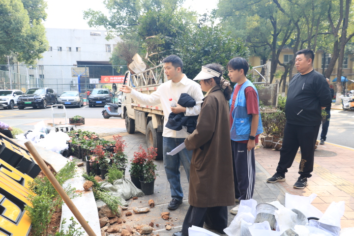 活动现场建筑学院风景园林系老师张颖带领学生志愿者与园林局工人、居委会成员分工协作。学生志愿者发挥专业优势,协助居民调整花苗间距、把控种植布局;社区居民与协会成员热情高涨,热情参与。从挖穴、扶苗到浇灌,各环节衔接顺畅。大家各司其职,将工作高效推进,空旷区域已被新绿与花色覆盖,现场热闹且秩序井然。“以前社区这块儿光秃秃的,现在亲手种下花花草草,看着就舒心!”参与施工的居民笑着说,言语里满是期待。建筑学院的学生志愿者唐珊也表示,能把课堂上学的景观知识用到实处,和居民一起为家园添彩,既有意义又有成就感。