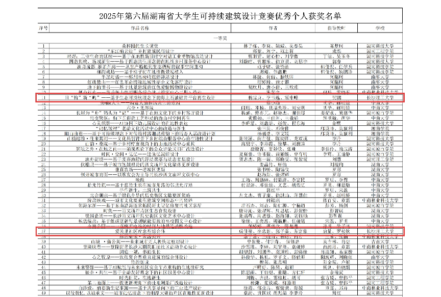 2025年11月,第六届湖南省大学生可持续建筑设计竞赛顺利举办。赛事由湖南省教育厅主办,本届赛事由中南林业科技大学承办,吸引全省18所高校近500个团队同台竞技,参赛规模再创新高 。