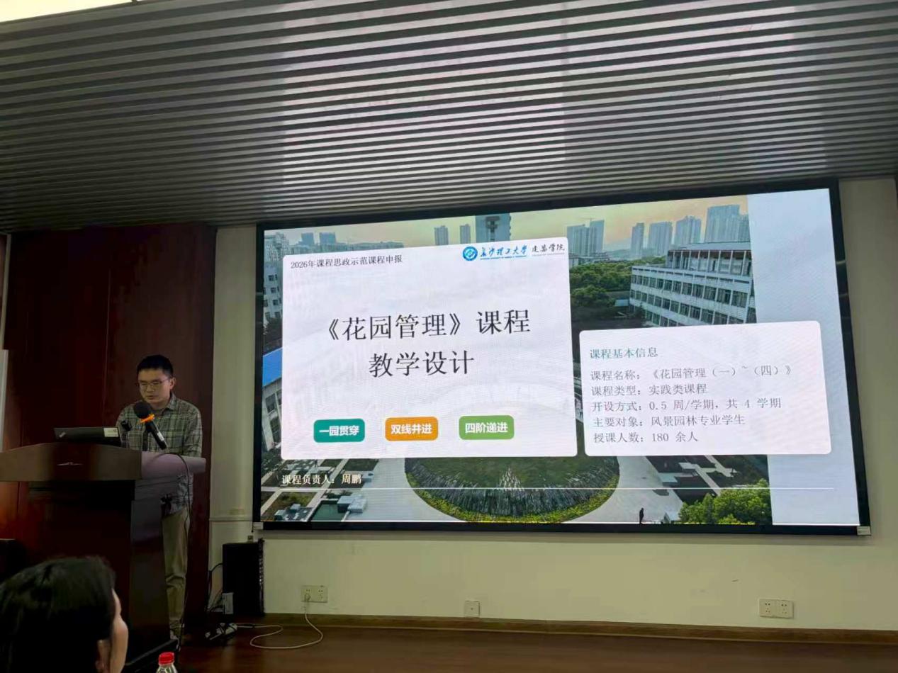 比赛现场,三位参赛教师准备充分、思路清晰,结合精心制作的演示文稿,围绕各自授课课程展开详细说课。梁莉华老师聚焦《建筑设计初步(二)》,彭军老师围绕《建筑设计(二)》,周鹏老师针对《花园管理》,分别阐述了课程的核心内容、教学目标,并结合专业特点,详细拆解了教学过程中思政目标的融入路径、实施方法,展现了对课程思政理念的深刻理解与扎实的教学实践功底,实现了专业知识传授与价值引领的有机结合。