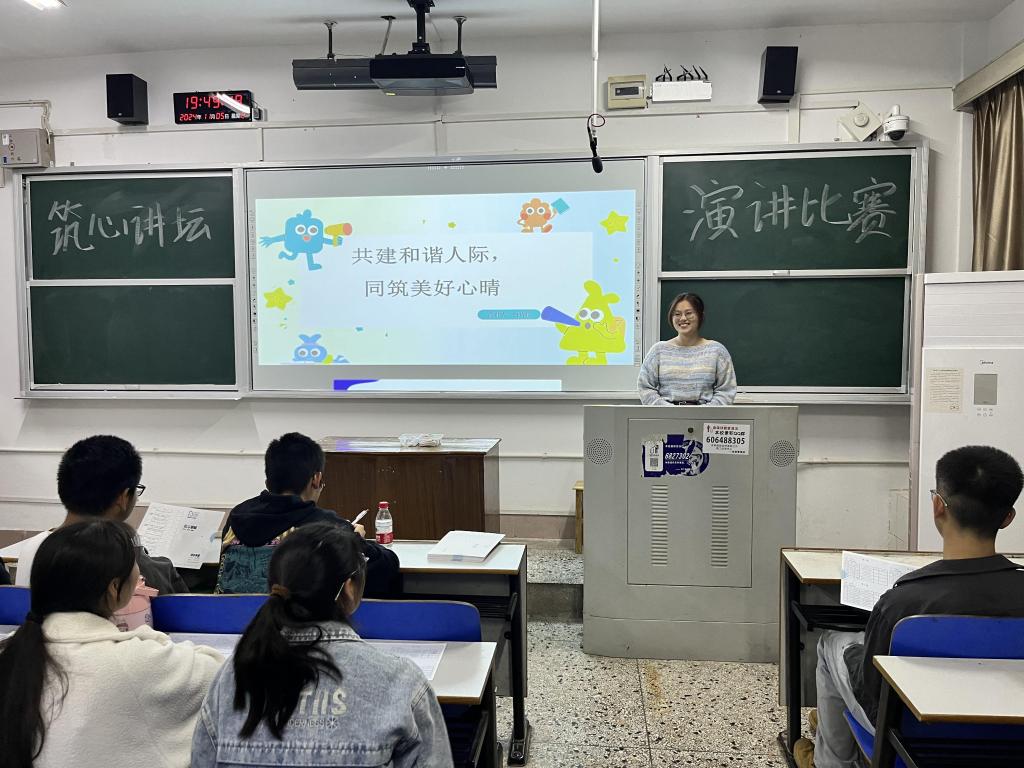 2024年11月5日晚上19:30,建筑学院2024年“筑心讲坛”活动在金盆岭校区13号教学楼顺利开展,本次活动是由建筑学院团委、学生会组织的特色演讲比赛,旨在帮助同学通过分享与交流,激发同学们对人际交往的深入思考,促进彼此间的理解与尊重,共同营造一个温馨、和谐的人际环境。