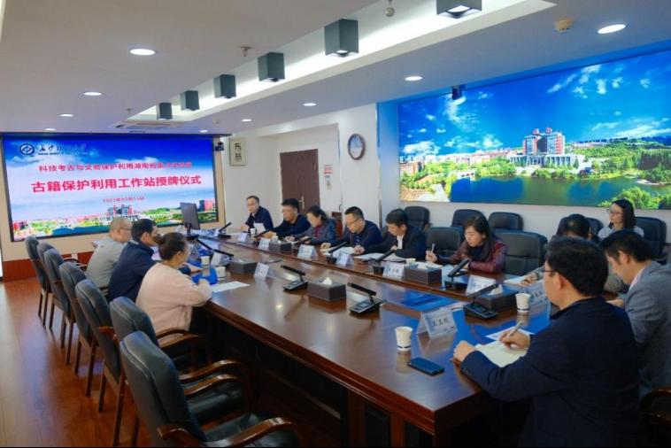 2023年3月15日,科技考古与文物保护利用湖南省重点实验室依托单位湖南博物院党委副书记陈叙良一行赴在线买世界杯平台调研,洽谈科技考古与文物保护利用湖南省重点实验室与在线买世界杯平台联合共建古籍保护利用工作站事宜,并举行授牌仪式。会议在学校一办六会议室举行,学校科研部王媛媛副部长、邢学敏副部长,化学化工学院党委书记宋刘斌、副院长(主持工作)张跃飞、学院其他领导及轻化工程系教师参加了活动和仪式,会议由张跃飞主持。
