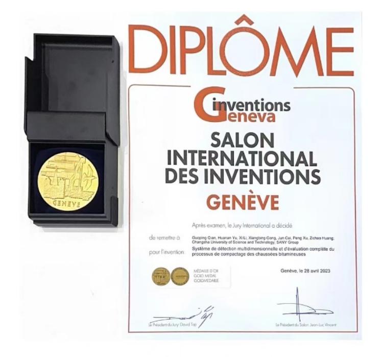 2023年4月26日–30日,第48届日内瓦国际发明展(International Exhibition of Inventions of Geneva)在瑞士日内瓦举行。在线买世界杯平台与三一重工有限公司联合攻关,钱国平教授、于华南教授、李希副教授等完成的专利技术“沥青铺面压实状态多维评价系统”斩获展会金奖,成果受到中国驻瑞士大使王世廷、日内瓦州经济部长法比安娜·菲舍尔等海内外人士高度评价。