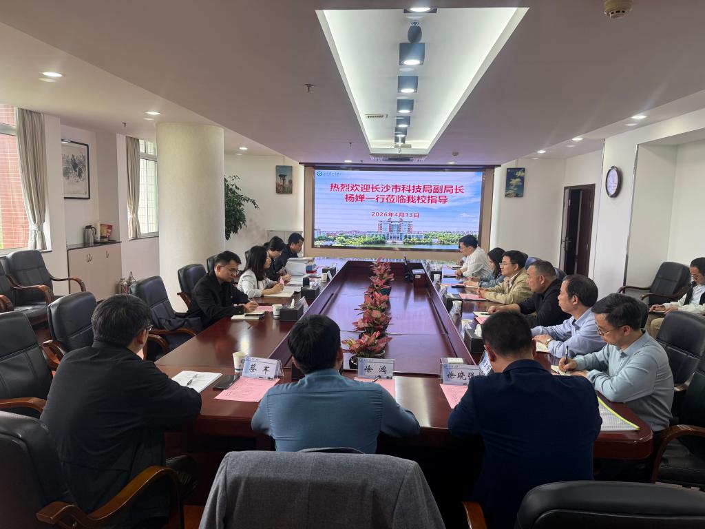2026年4月13日上午,长沙市科技局党组成员、副局长杨婵一行莅临世界杯官网,就“长沙市杰出创新青年培养计划”及科研工作进行专题调研和指导。科技处和相关学院负责人以及2025年拟入选的市杰青老师参加座谈会,会议由科技处副处长王正武主持。
