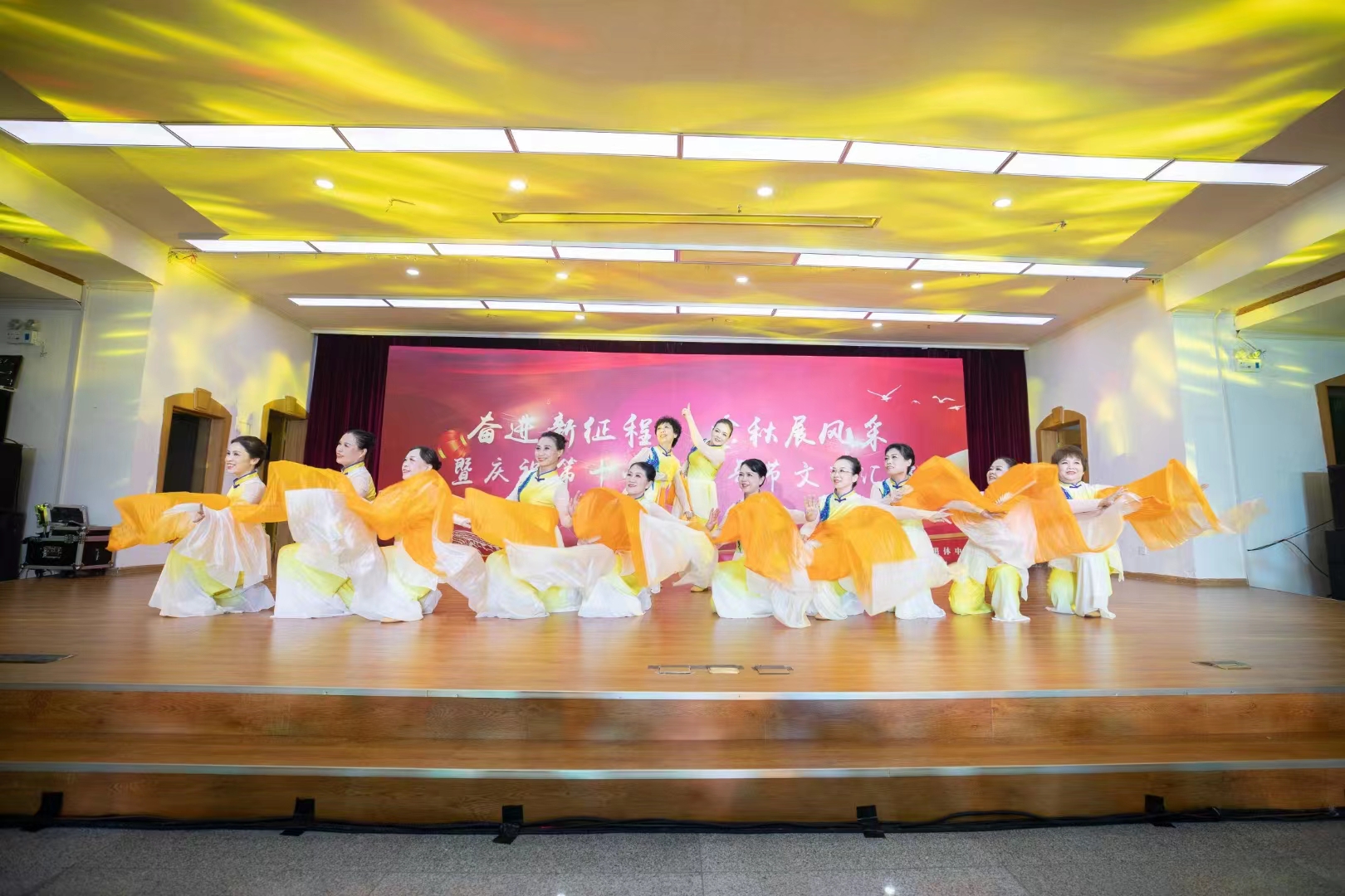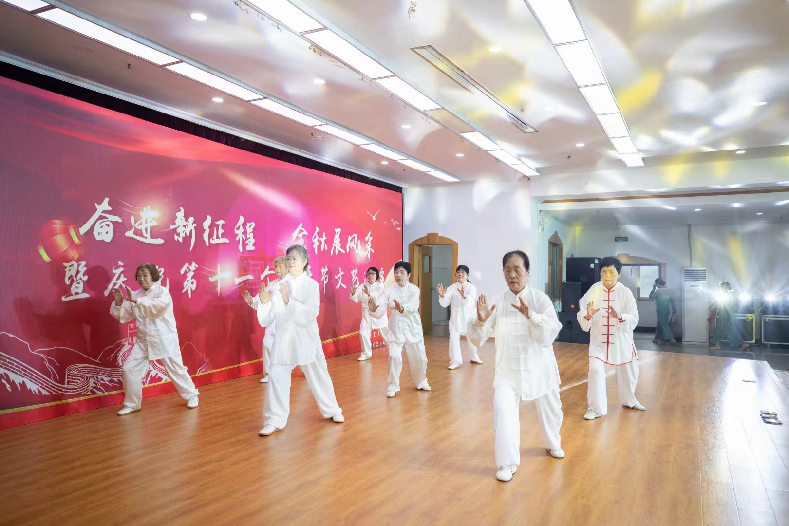 文艺汇演在离退休中心民乐队《飞驰天路》中拉开序幕,随后,离退休教职工以合唱、舞蹈、京剧、模特秀、太极拳等形式表演11个精彩节目。演员们激情澎湃的演艺,表达了真挚的爱党爱国爱校之情,也充分体现了广大老同志积极向上、与时俱进的时代风采和精神风貌,展示了新时代离退休教职工的幸福生活。