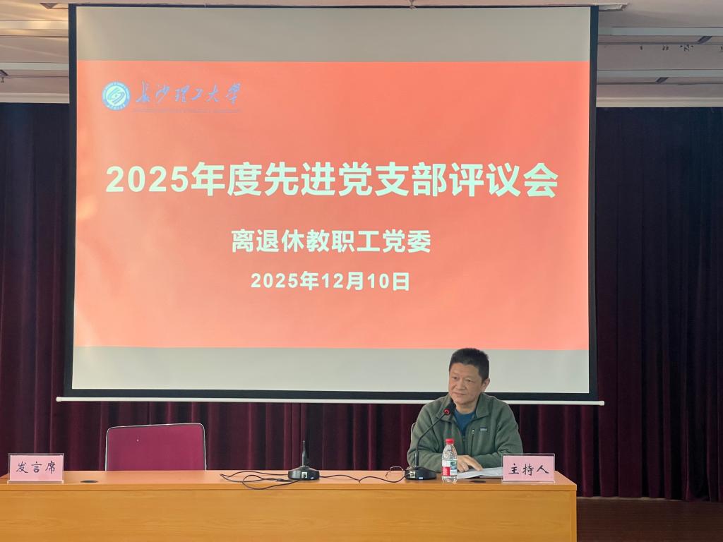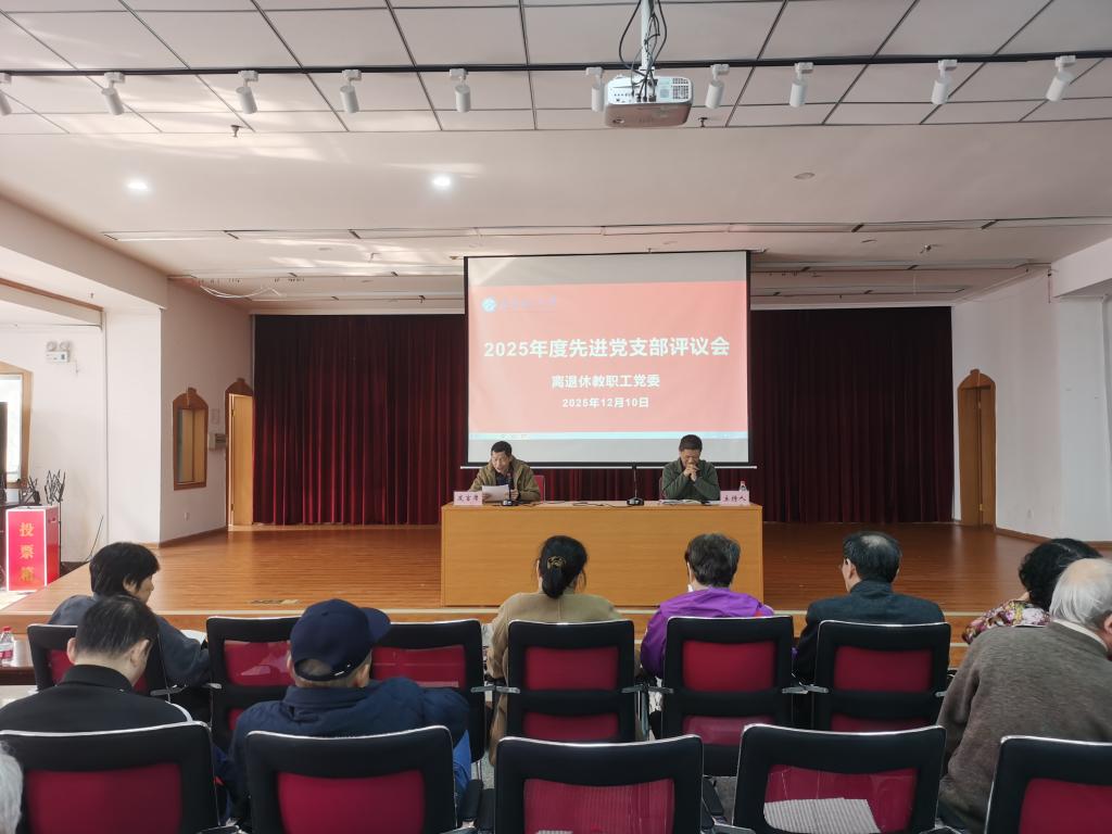 12月10日,在金盆岭校区五教5楼多功能厅,离退休教职工党委召开2025年度先进党支部述职评议会,离退休教职工党委委员、离退休党支部书记、离退休中心支部联系人参加,特邀校关工委常务副主任王乃厚参加。会议由离退休教职工党委书记徐亮主持。