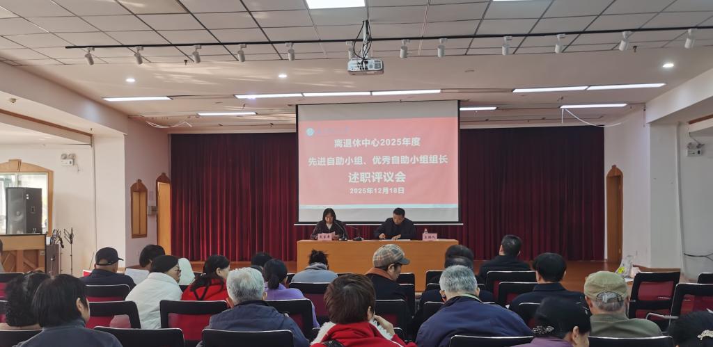 12月18日,离退休中心在金盆岭校区5教5楼多功能厅顺利召开2025年度“先进自助服务小组”述职评议会。离退休中心副主任周宇佳主持会议,39个自助服务小组组长及离退休中心全体工作人员参加会议。