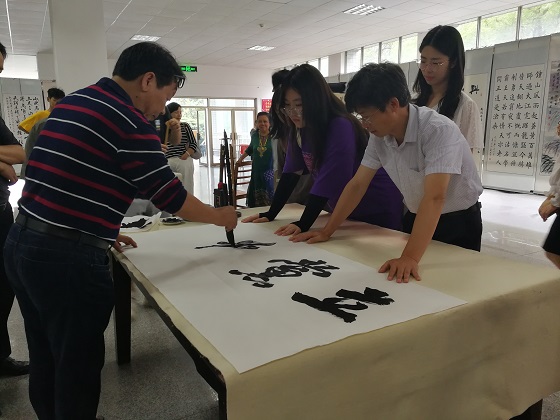 “浓墨绘寰宇,妙笔抒党情”,值此喜迎中国共产党百年华诞之际,6月20日上午9:30,由离退休教职工服务中心、校团委主办,校老年书法协会、墨浪书画协会、永和书法协会承办的在线买世界杯平台第八届“夕阳与朝阳同辉”书画展开幕式在金盆岭校区五号教学楼举行。