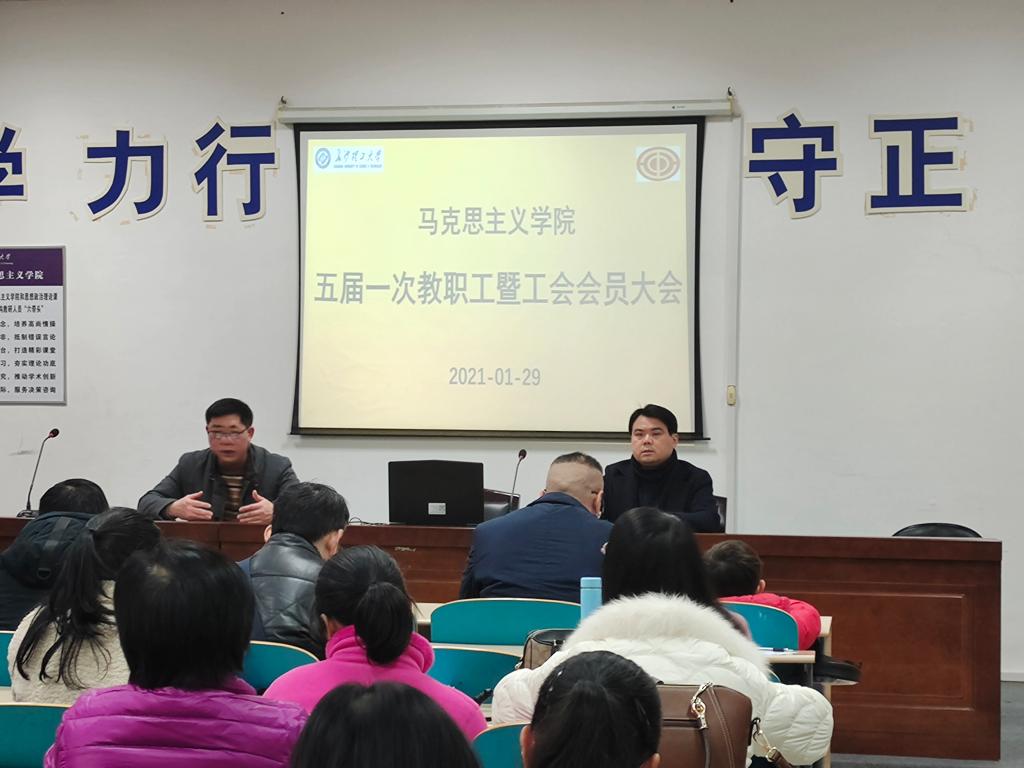 经学院党委同意,学校工会批准,2021年1月29日下午,马克思主义学院第五届一次教职工暨工会会员大会在云塘校区文科楼C-202会议室举行。本次大会由学院党委书记易显飞教授主持,学院工会会员(教职工)参加了大会。