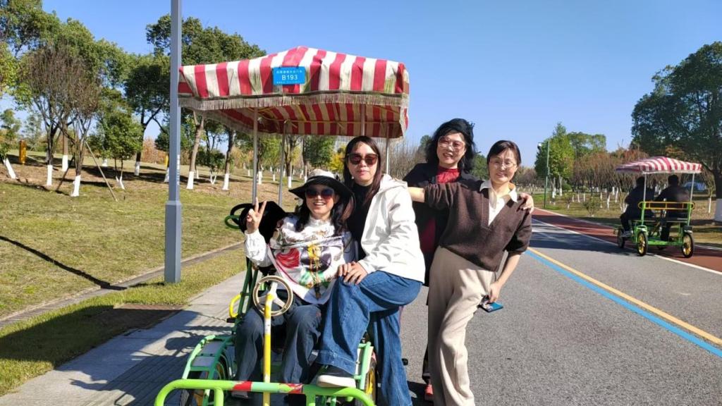 下午的环湖徒步和骑行活动在冬日暖阳中火热进行。全程约10公里的环湖路线串联起松雅湖金沙银滩、楚帛广场、关羽广场、松雅书院、书韵溪谷、水杉森林、国际友谊林等人文和自然景观。老师们或骑行,或徒步,走走停停,拍照打卡,沿途欣赏湖光山色,感受生态环境建设成就,领悟新时代美好生活。