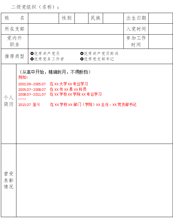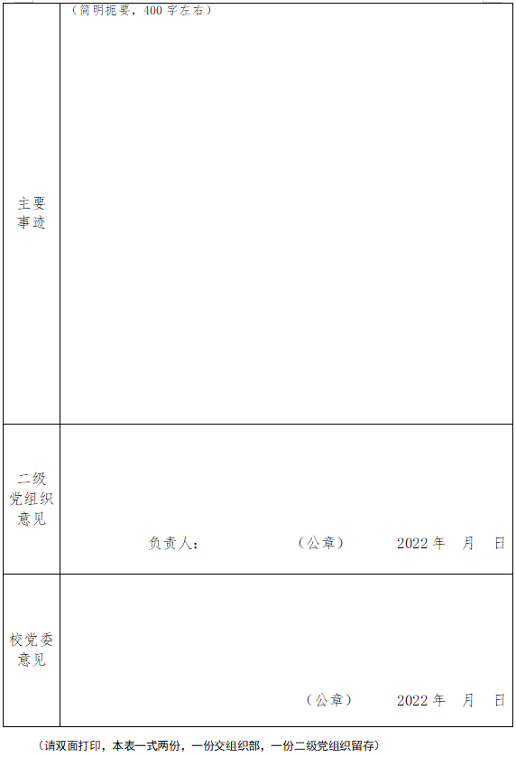 在线买世界杯平台优秀共产党员、优秀共产党员标兵、 优秀党务工作者、优秀党支部书记推荐审批表