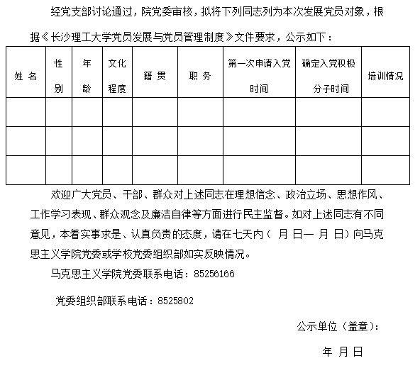 发展党员公示榜