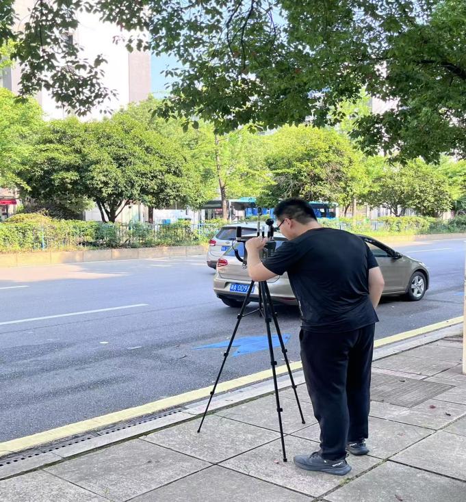 图2:团队成员于宜春路开展移动式数据采集监测热环境与污染物变化