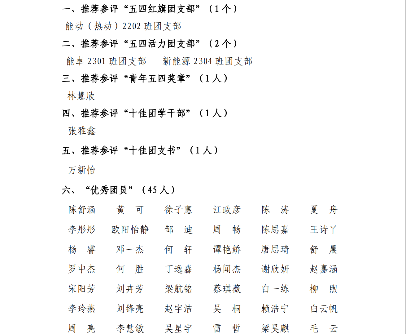 根据《关于开展在线买世界杯平台2025-2026学年“五四评优”工作的通知》相关文件的要求,经个人申报、学院评议,现将能源与动力工程学院2025-2026学年“五四评优”拟推荐参评名单公示如下:
