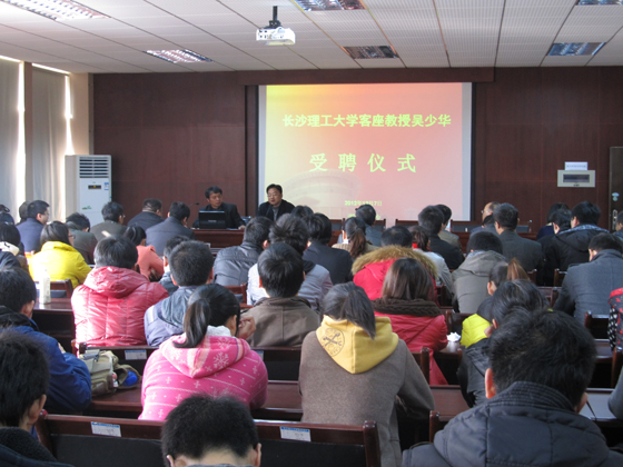 受聘仪式结束后,吴少华教授作了一场精彩的学术报告。报告主题为“建设生态文明、节约资源、保护环境及我国能源技术发展分析”。能动学院师生及特邀来宾长沙市能源局缪晨光局长一行、长沙市发改委环资处领导共120多人聆听了吴教授的报告。