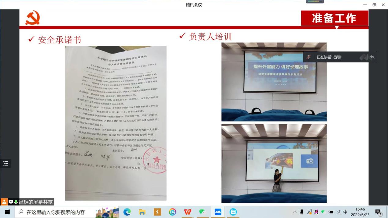 会议上,吕玥从项目介绍、准备工作、阶段计划和结项要求四个部分做了汇报,其中包含队服制定、安全承诺书和负责人培训等细节,并提出下一阶段实践团队的工作安排。团队指导老师赵斌曾作为中组部团中央第17、18批援藏博士团成员,在藏3年8个月零八天,援藏结束后指导世界杯官网能动学院、电气学院共4名研究生从事西藏太阳能利用方向的专业实践。为保证此次实践安全、务实、高效地顺利进行,他从自身经历出发,着重强调了解民风民情、做好防护等前期筹备工作的重要性,组织成员明确分工,在调查研究中发现问题、对照检查、深化感悟、寻找措施。他也鼓励同学们把调查研究的结果转化为科学决策的有力依据,形成求真务实的调查研究之风。