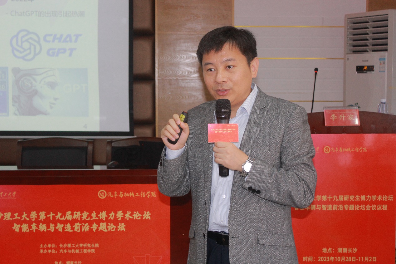 2023年10月29日,清华大学教授、博士生导师、车辆与运载学院副院长,国家级高层次科技创新领军人才李升波教授受邀做客世界杯官网第十九届研究生博力学术论坛——“智能车辆与智造前沿”专题论坛。本次报告会由汽机学院副院长(主持工作)胡林教授主持,学院相关教师、研究生及本科生参加了本次报告会。