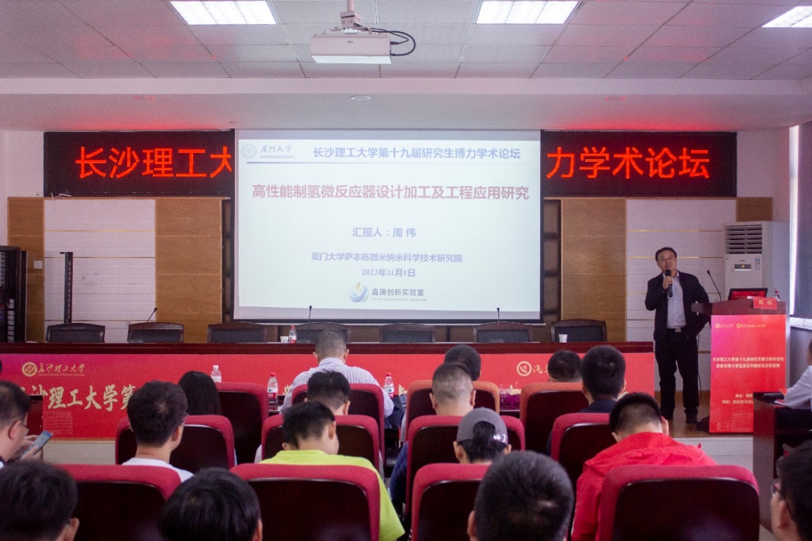 周伟教授以《高性能制氢微反应器设计加工及工程应用研究》为题,从研究背景和意义入手,着重阐述了甲醇重整微反应器技术以及氢燃料电池供氢模式存在的技术问题。报告会上,汽机学院师生们与周伟教授就高性能制氢微反应器设计加工及工程应用研究展开了深入探讨,现场气氛活跃。这次报告会不仅开阔了学生们的视野,启发了学生们的创新思维,还督促学生们养成探索习惯,提升科研能力。同时,也对汽机学院的学科建设和人才培养产生了积极作用。