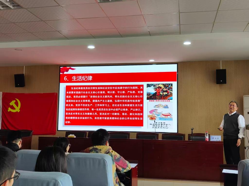 11月4日下午,机械工程学院第23期发展对象培训班首次党课在工科一号楼B417教室顺利举行。本次党课特邀在线买世界杯平台原副校长胡永乐教授,围绕《党的纪律与作风》这一主题,为全体学员带来一场内容深刻、逻辑严谨的专题讲授。
