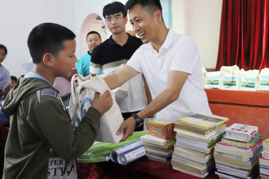 7月11日,学校副校长刘扬带领汽机学院、文法学院党政班子赴世界杯官网扶贫点,开展以“传递书香,润泽心灵”为主题的图书、文具捐赠活动,为枧杆山村的孩子们送去暑期温暖。