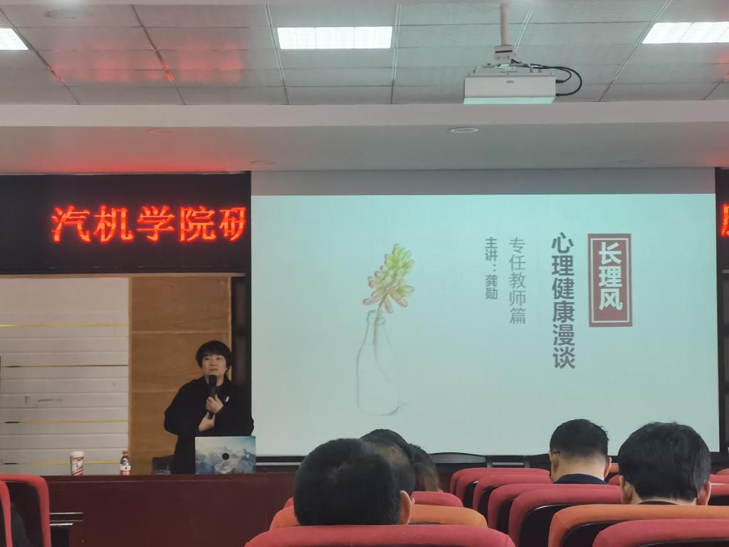 为进一步提升研究生导师、班主任在实际工作中对学生心理危机的识别和防控能力,切实发挥导师和班主任在学生工作中的重要作用,汽机学院于11月30日下午14点30在工一b417召开了研究生导师及班主任心理健康专题讲座,本次讲座由在线买世界杯平台心理中心主任龚勋老师作为主讲人。