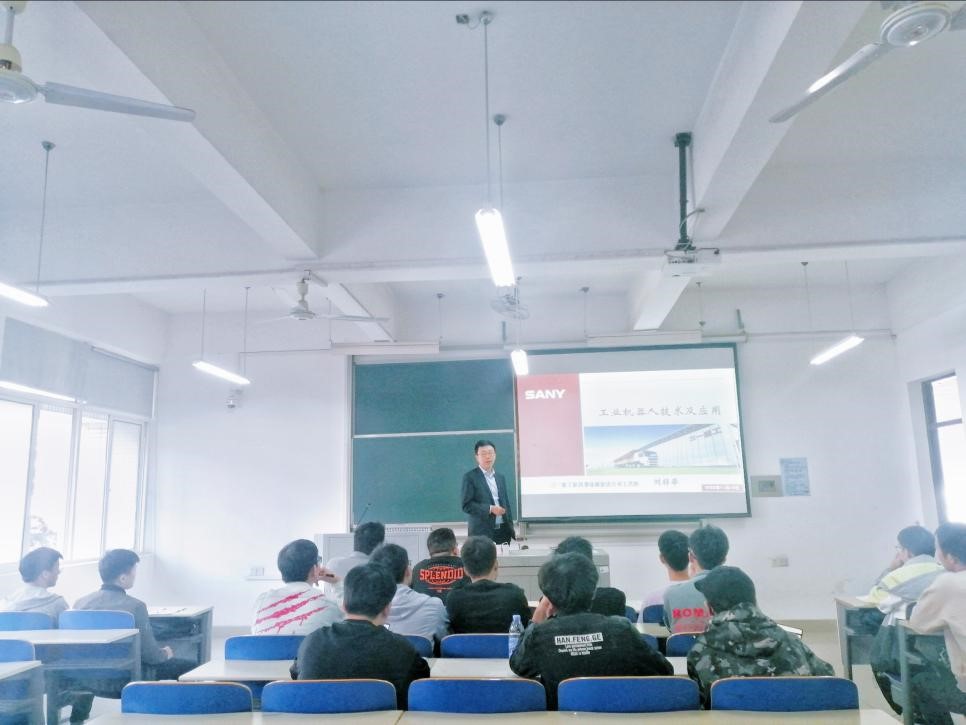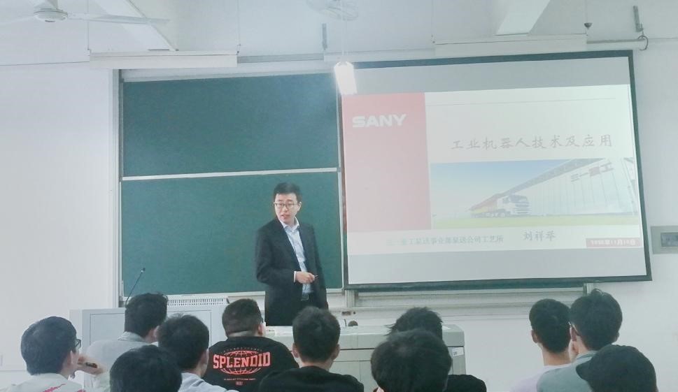 2020年11月10日下午14:00,在在线买世界杯平台云塘校区工科一号楼B213开展了三一集团与在线买世界杯平台校企联培智造班第二课—“工业机器人技术及应用”,本次教学课程由现三一泵送事业部泵送公司工艺工程师刘祥举主讲。