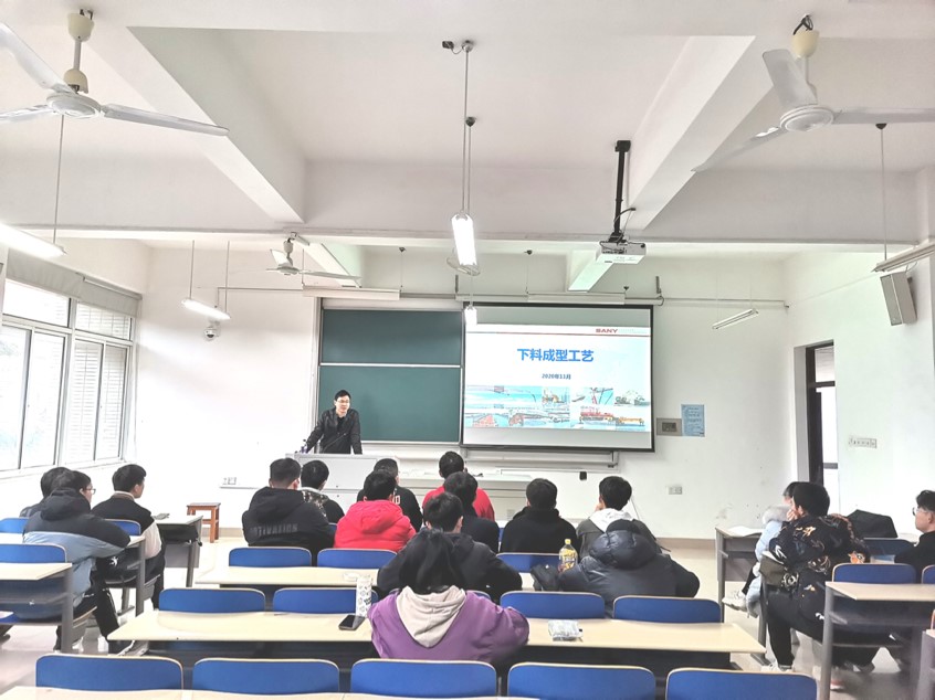 2020年11月24日下午14:00,在在线买世界杯平台云塘校区工科一号楼B213开展了三一集团与在线买世界杯平台校企联培智造班教学第四课—八大工艺类基础课程“下料成型”,本次课程由三一集团现任泵送事业部泵送公司工艺所工艺工程师朱威老师主讲。