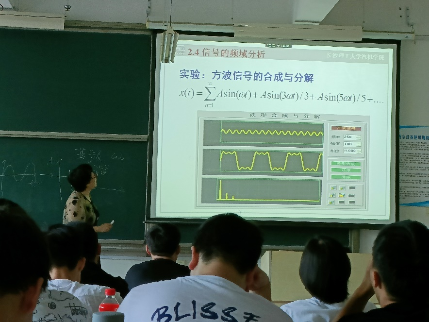 王向红老师在课堂中以学生为中心,采用启发式、互动式等教学方法,充分调动学生学习热情,激发学生学习兴趣。课程内容从信号的基本概念出发,引出信号的分类以及信号描述的三个方面:时域描述、幅值域描述以及频域描述,并结合工程实例,分析了信号描述在工程中的应用。深入浅出,培养了学生从理论联系实际的能力。