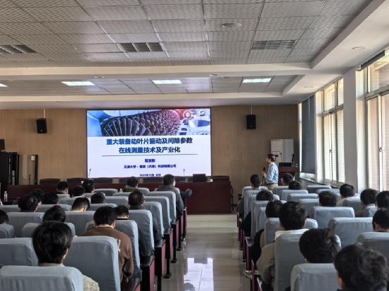 在讲座中,段发阶教授详细介绍了团队近年来在动叶片振动及间隙在线测量技术方面的研究成果。通过引入光电测量技术,团队开发了新型测量仪器,实现了对动叶片状态参数的高精度、实时在线监测。这些技术不仅显著提升了测量数据的可靠性,还大大降低了设备的维护成本。讲座设置了互动环节,听众们积极提问,段教授耐心解答,现场气氛热烈,学术氛围浓厚。