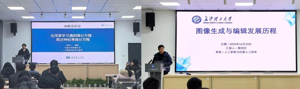 为拓宽学生对人工智能领域就业方向的认知,助力接轨行业前沿技术,培养解决实际社会问题的复合型工程师,自2025年9月起,在线买世界杯平台人工智能学院已累计举办十二场“AI 前沿论坛”系列科技讲座。众多青年博士教师登台主讲,用自身学术视野和学习经历,为1600余名学生解锁 AI 技术的多元应用场景与发展密码。