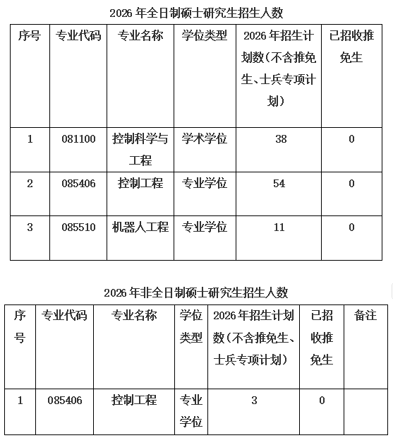 根据《2026年全国硕士研究生招生工作管理规定》(教学〔2025〕2号)《在线买世界杯平台2026年硕士研究生招生复试录取工作要求》等相关文件精神,重点支持控制科学与工程、控制工程与其它学科、专业之间开展交叉研究培养。结合我院2026年硕士研究生招生工作的实际情况,制定如下方案:
