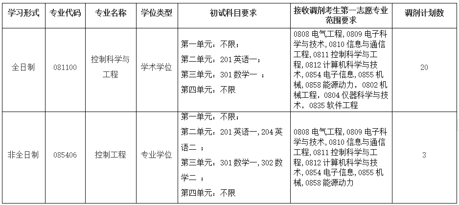 3.控制科学与工程初试成绩满足国家复试初试成绩基本要求(A类考生),控制工程初试成绩总分不低于292分。
