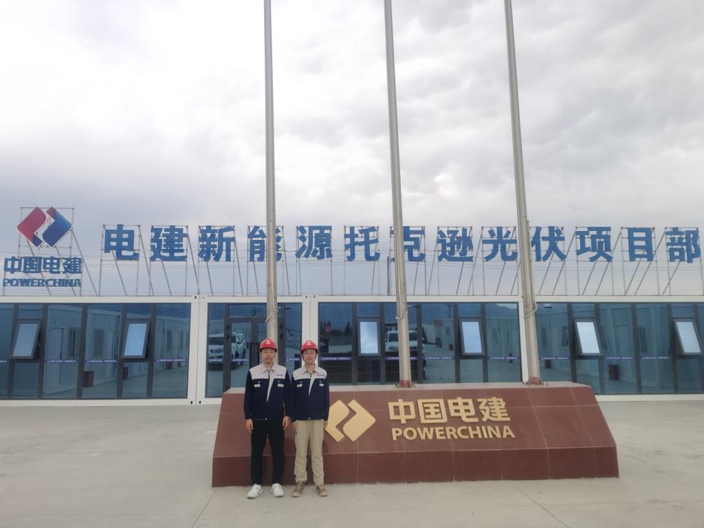 中国水利水电第一工程局有限公司新疆托克逊光伏+光热一体化项目、若羌光伏+光热一体化项目均为900 MW太阳能光伏发电,配套100 MW太阳能光热储能电站,两项目的设计容量及关键技术指标均达世界领先水平,建成后将为新疆及周边地区供应清洁电力能源。世界杯官网孙刘涛、刘磊、蒋大鹏3名青年教师被派往该项目工程管理部开展实践锻炼,主要负责对太阳能光伏发电施工现场进行定期巡检,现场学习了光伏板水泥基座检验方法、基座的回弹强度及钢筋位置检测、施工规范及技术要求等,对电站整体设计和布局做了全面了解。