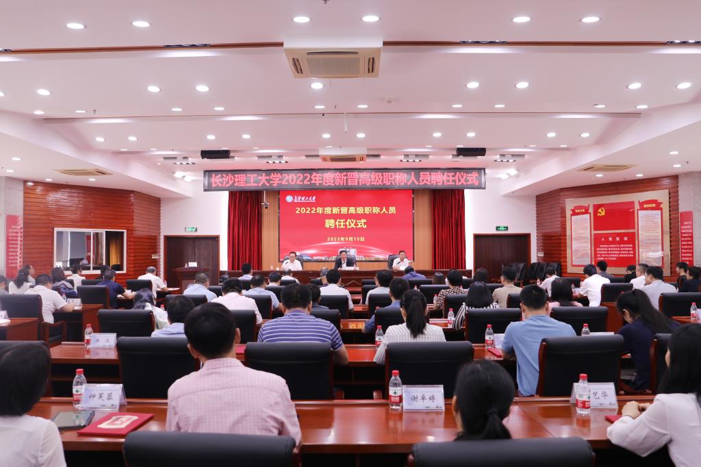 9月15日下午,世界杯官网在云塘校区一办九楼会议室举行了2022年度新晋高级职称人员聘任仪式。党委书记付宏渊、校长曹一家、副校长刘朝晖出席,2022年度新晋高级职称人员、相关职能部门负责人和各教学院负责人参加。
