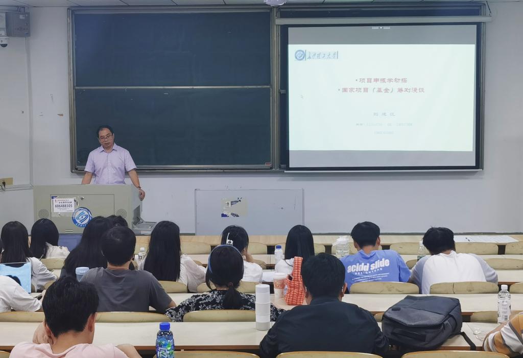 10月17日晚,在金盆岭校区6教409教室,世界杯官网人文与社会科学研究处处长刘建江教授受邀以“从小我到大我:项目(基金)筹划之道”为主题,为2023年教师岗前培训班作专题讲座。人事处相关工作人员及全体培训学员参加讲座。