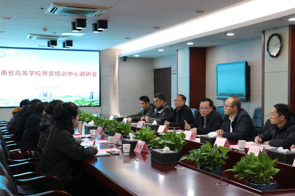 3月4日下午,湖南省高等学校师资培训中心常务副主任罗晓慧带领调研组来校就岗前培训、教师准入、访问学者等工作开展调研座谈。校党委委员、副校长刘朝晖出席调研座谈会。调研座谈会由学校人事处处长、教师工作部部长刘宏伟主持。